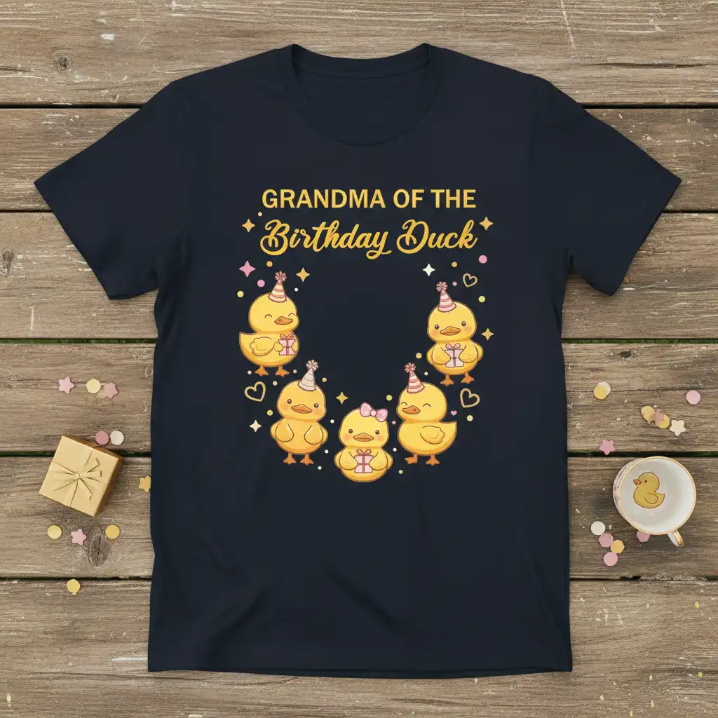 The “Birthday Duck” motif is whimsical and endearing, appealing to both grandmas and the children they love. It evokes feelings of fun, celebration, and the special magic of childhood birthdays. This t-shirt serves as a constant reminder of the joy and laughter shared between a grandmother and her grandchild, making it a cherished keepsake.